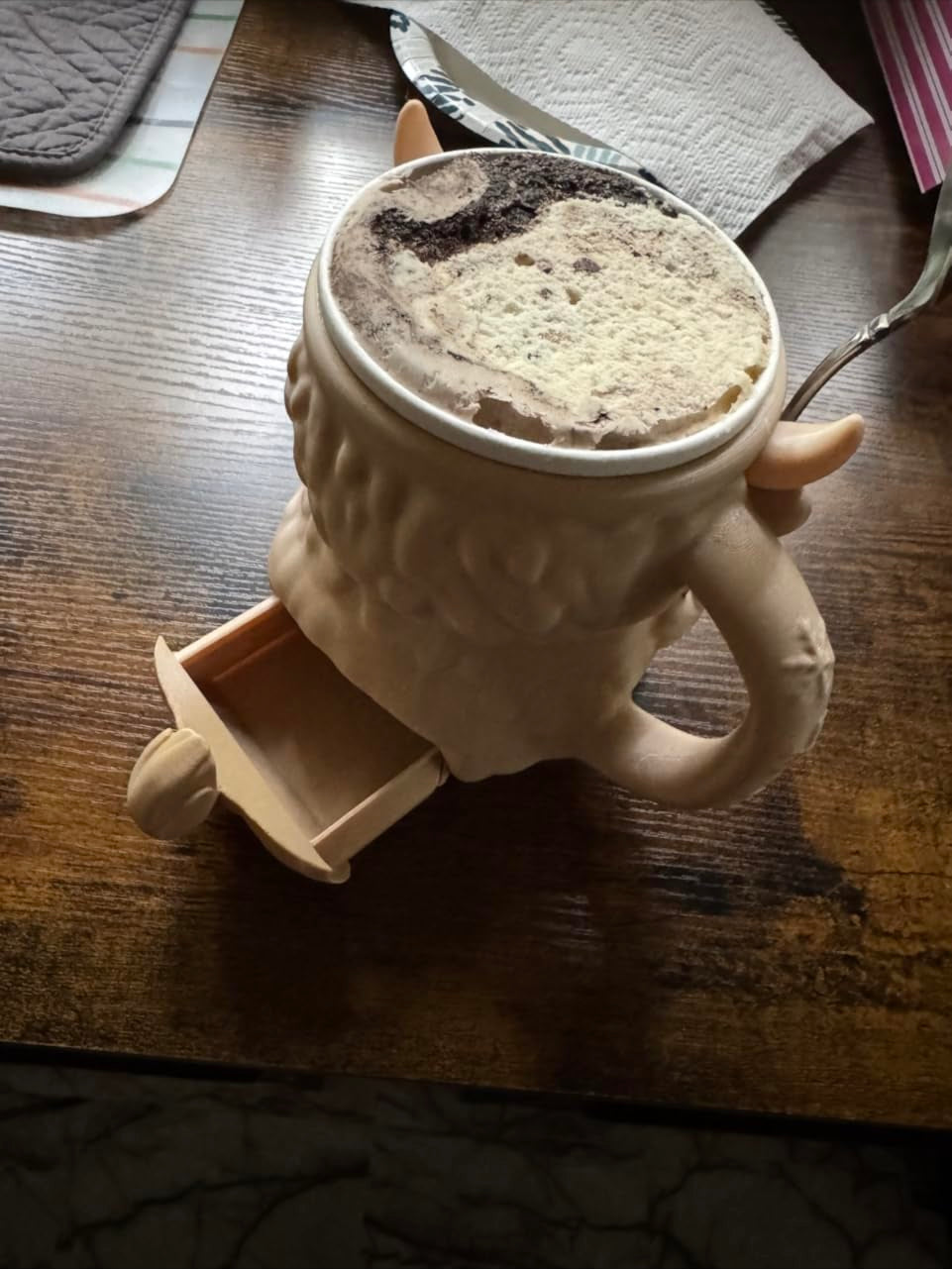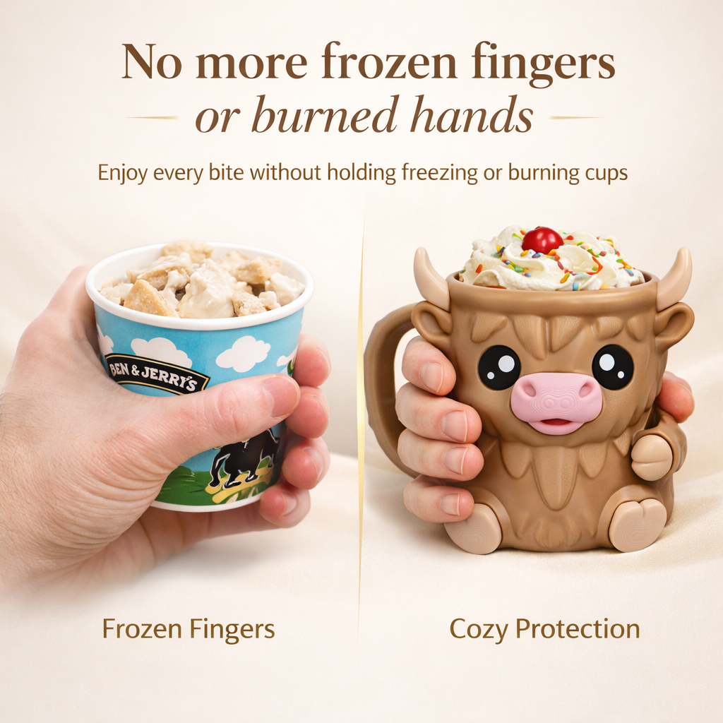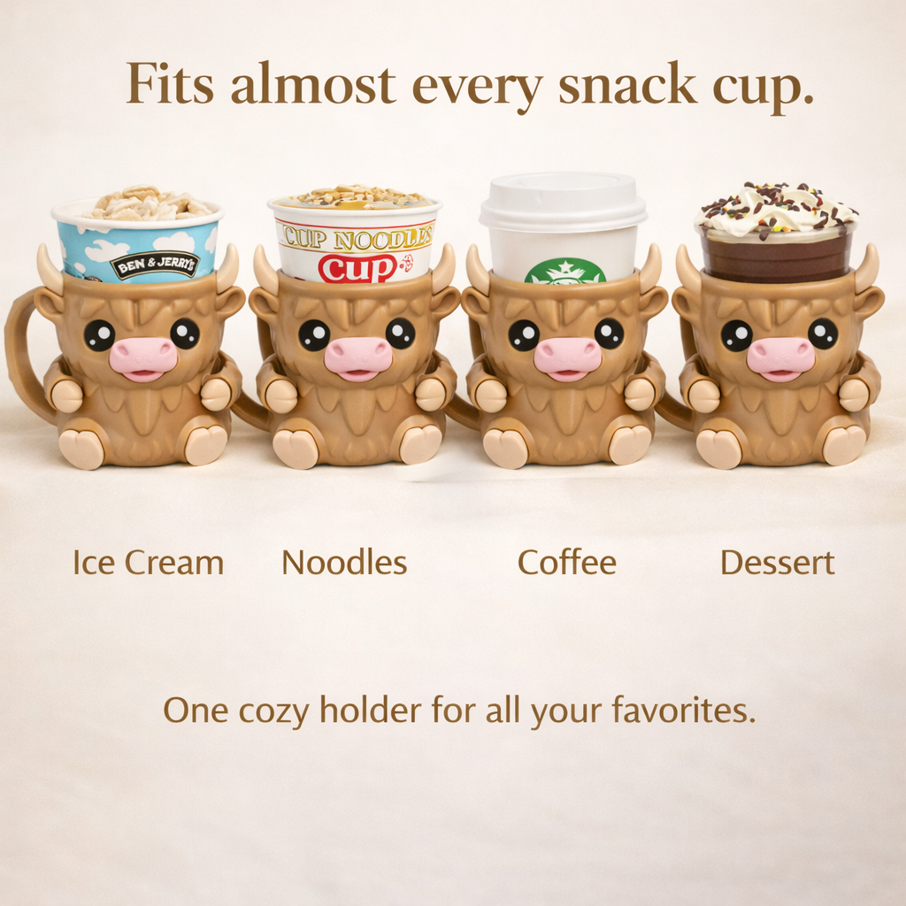 Yes, the Cow Cup Holder is designed to fit standard ice cream pints, coffee cups, and most soda or smoothie cups. It hugs them snugly so they don’t wobble or slip.